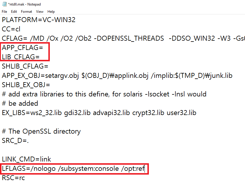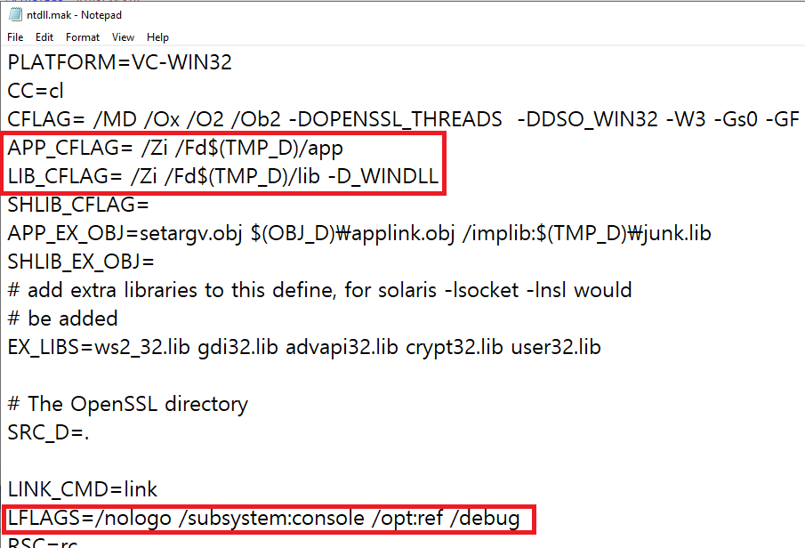 * 64bit 로 빌드할 경우는 ms\ do_win64a 를 실행
