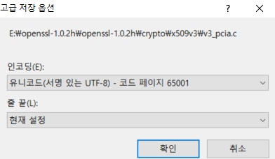 위에 있던 주석을 전부 지워준 후에 파일 > 고급 저장 옵션 > 유니코드(서명 있는 UTF-8) - 코드 페이지 65001 > 확인