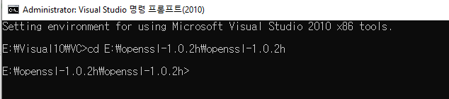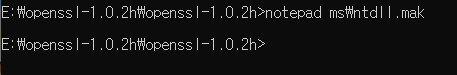$cd 경로 (cd E:\openssl-1.0.2h\openssl-1.0.2h)