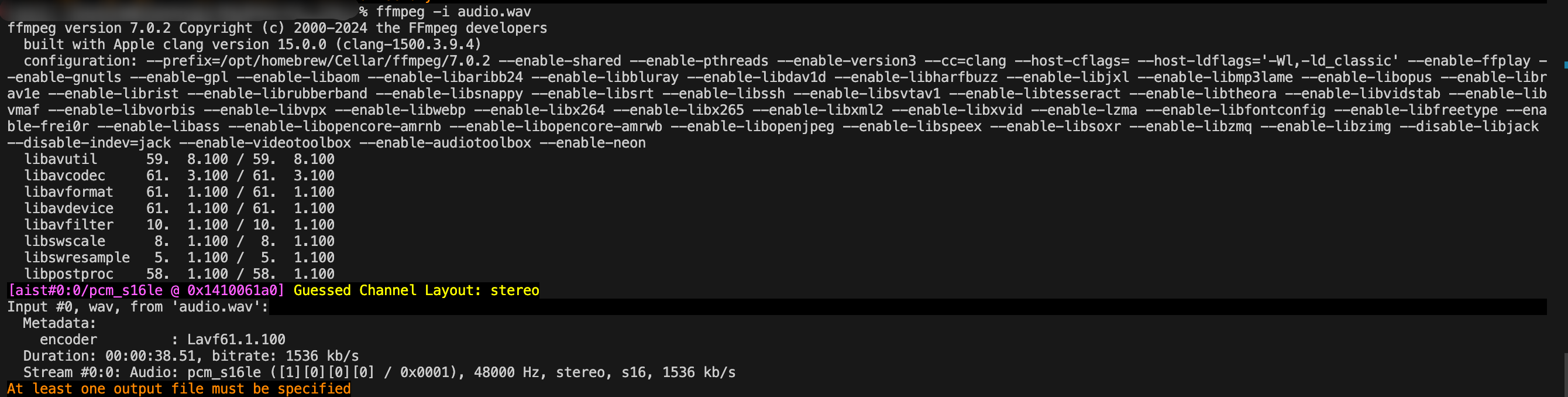 ffmpeg -i path/to/your/audio.wav