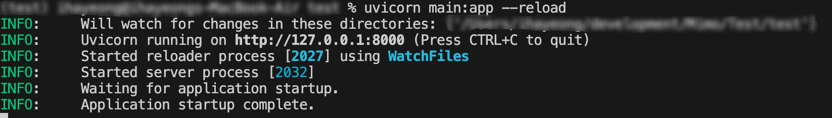 만약 내 파일 이름이 main.py 이라면, uvicorn main:app --reload 을 실행시켜주면 된다.