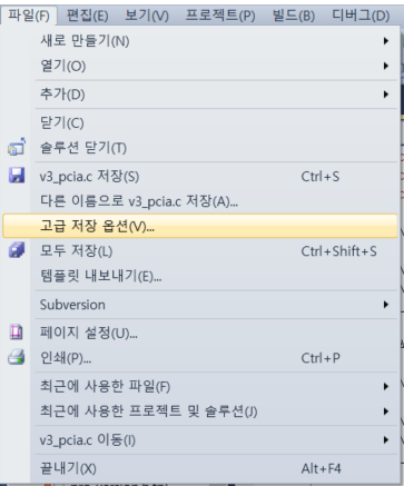 위에 있던 주석을 전부 지워준 후에 파일 > 고급 저장 옵션 > 유니코드(서명 있는 UTF-8) - 코드 페이지 65001 > 확인