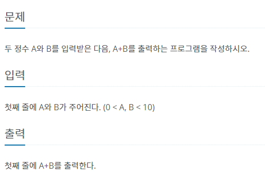 문제는 두 정수를 입력 받은 후 더한 결과를 출력하는 문제이다.
