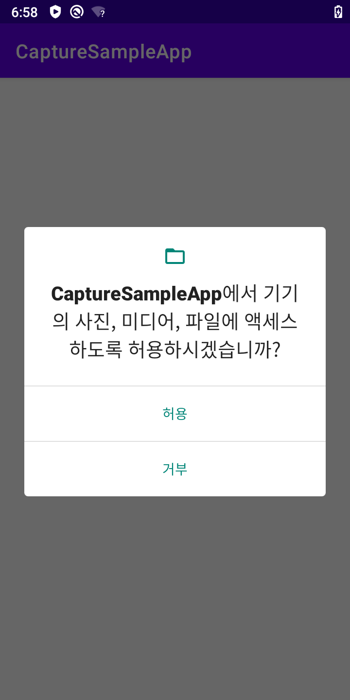 | // storage permission if (Build.VERSION.SDK_INT >= Build.VERSION_CODES.M) { if(checkSelfPermission(Manifest.permission.WRITE_EXTERNAL_STORAGE) != PackageManager.PERMISSION_GRANTED || checkSelfPermission(Manifest.permission.READ_EXTERNAL_STORAGE) != PackageManager.PERMISSION_GRANTED) { if(shouldShowRequestPermissionRationale(Manifest.permission.WRITE_EXTERNAL_STORAGE)) { Toast.makeText(this, "외부 저장소 사용을 위해 읽기/쓰기 필요", Toast.LENGTH_SHORT).show(); } requestPermissions(new String[] {Manifest.permission.WRITE_EXTERNAL_STORAGE,Manifest.permission.READ_EXTERNAL_STORAGE}, 2); } } } |