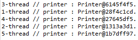 결과에서 @뒤에 나온 숫자가 printer 객체를 나타내는데, 다 다른 것을 볼 수가 있다.