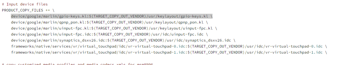즉 우리가 추가하고 싶은 key event의 event file path name는 "gpio-keys" 였고, 이에해당하는 kl 파일은 gpio-keys.kl 파일로 생각하면 된다.