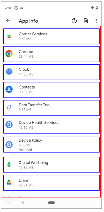 설정 앱 > 앱 정보에 나와있는 리스트와 같이