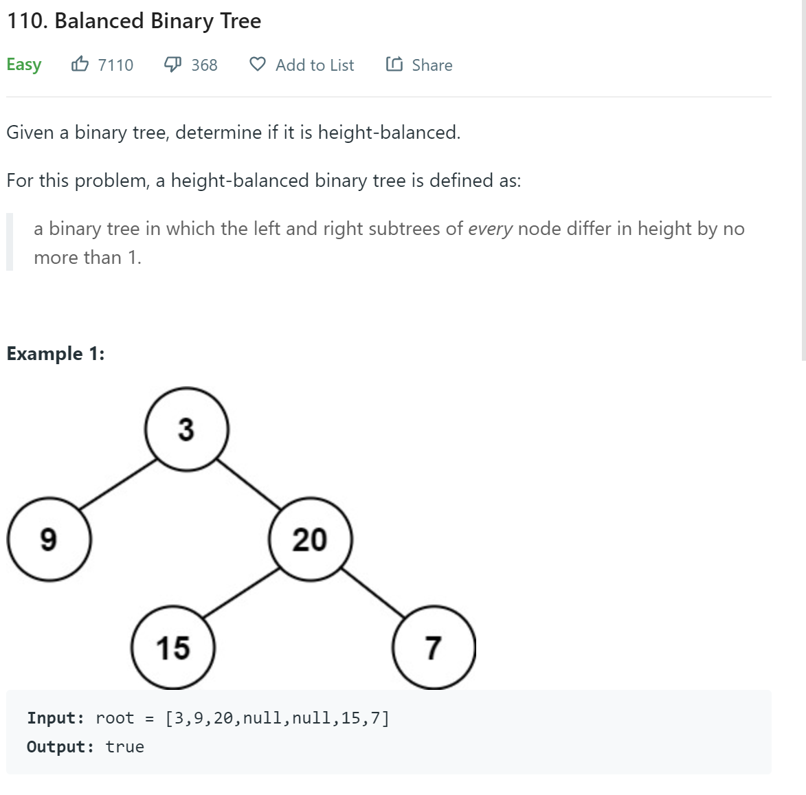left와 right 높이 차이가 1보다 크게 나면 false, 아니면 true를 return 하는 문제!