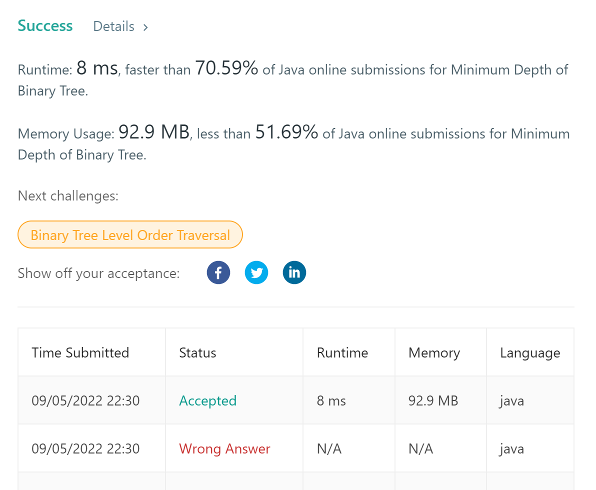 if(root.right != null) rightDepth = minDepth(root.right) + 1;