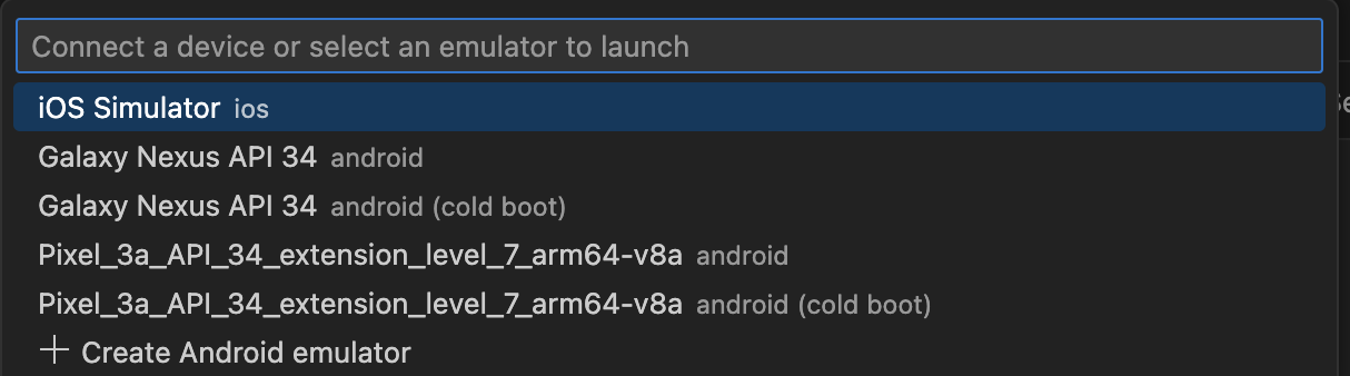 각각 플랫폼에서 설치해둔 에뮬레이터만 실행이 가능하기 때문.