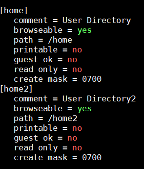 smb.conf 맨 아래에 User가 사용할 Directory에 대한 정보를 입력해준다.