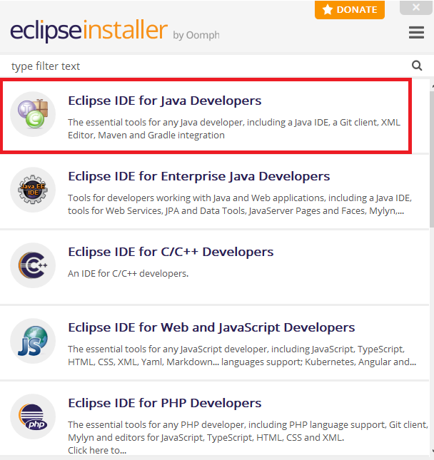 저는 자바로 개발을 원하기 때문에 맨 위에 것을 설치해주었습니다!