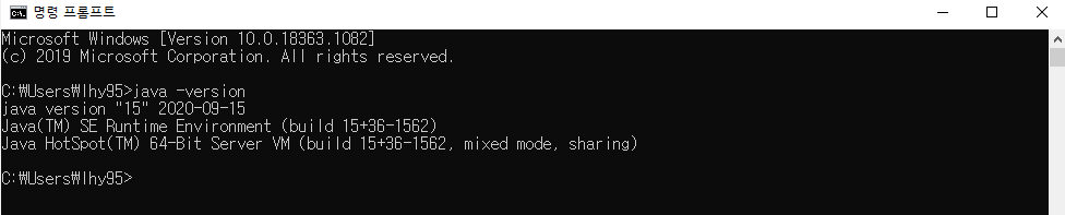 cmd 창에 java -version 을 입력했을때, 설치한 알맞은 정보가 보이면 설치가 잘 된 것 입니다!