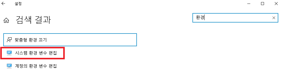 설정에서 검색을 통해 환경 변수 편집을 진행하면 됩니다.
