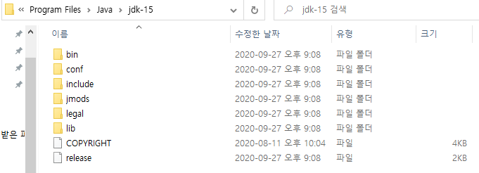 설치하면서 중간에 경로를 변경해도 되고, 경로 변경을 안하면 기본 경로는 C:\Program Files\Java\jdk-15 가 됩니다.