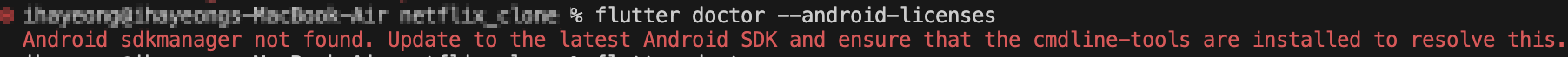 flutter doctor 를 실행했을 때, 위와 같은 에러가 발생했을 때 처리하는 방법 에 대해 알아보자!
