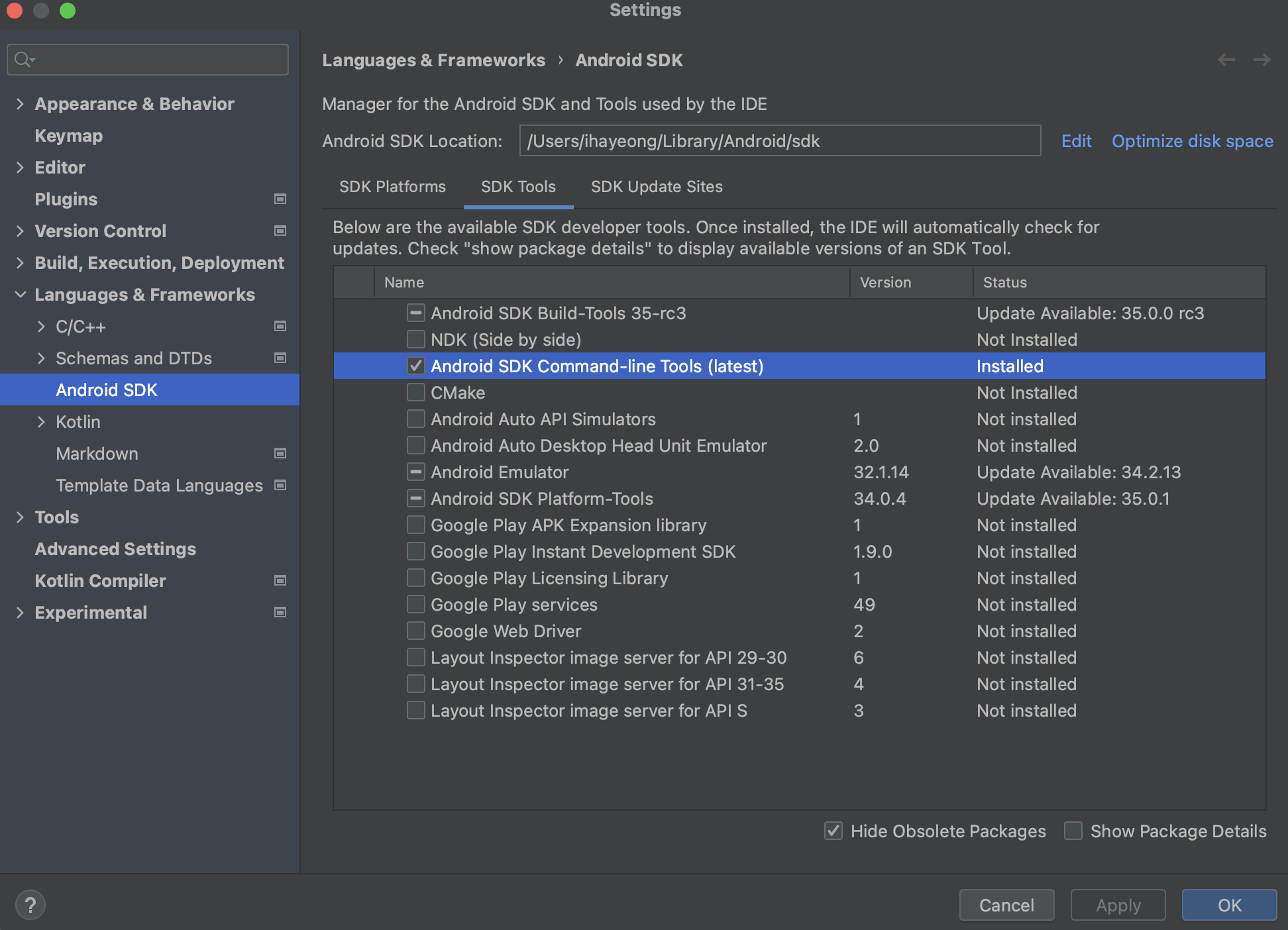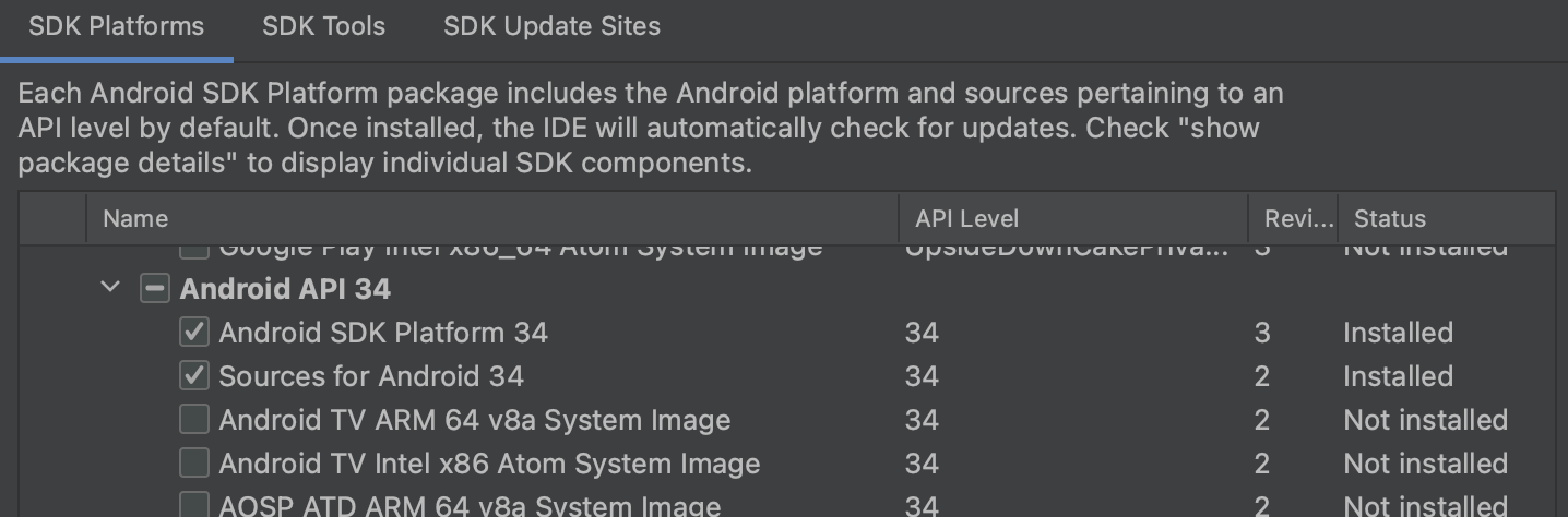 SDK Platforms 에서 설치 되었는지 확인